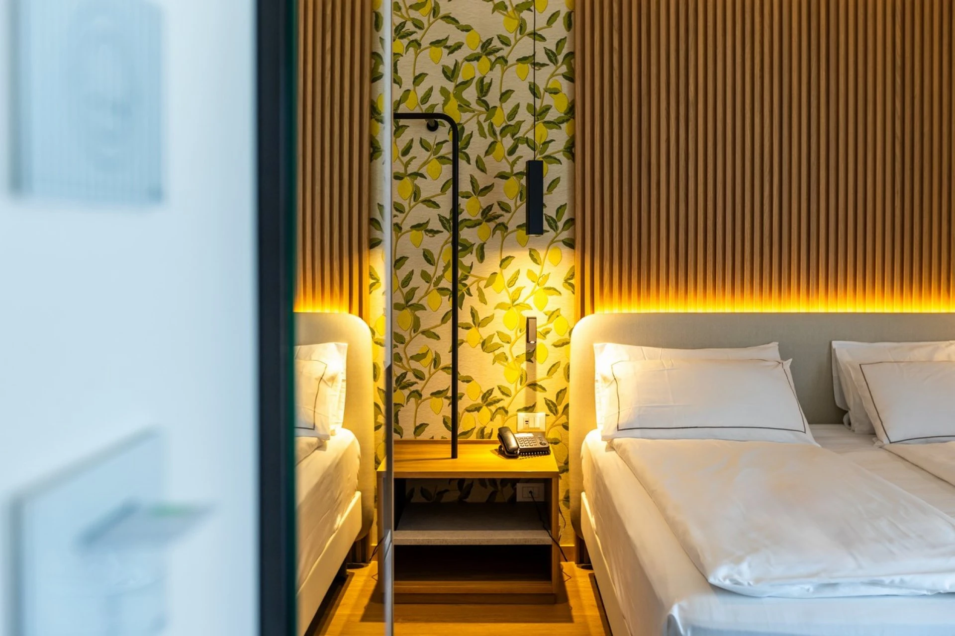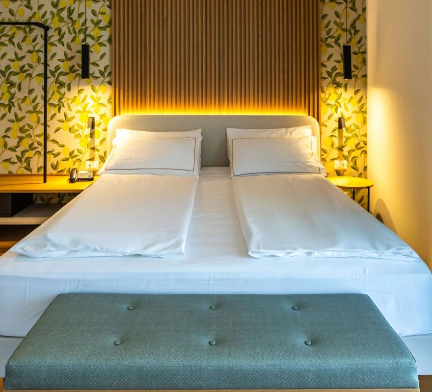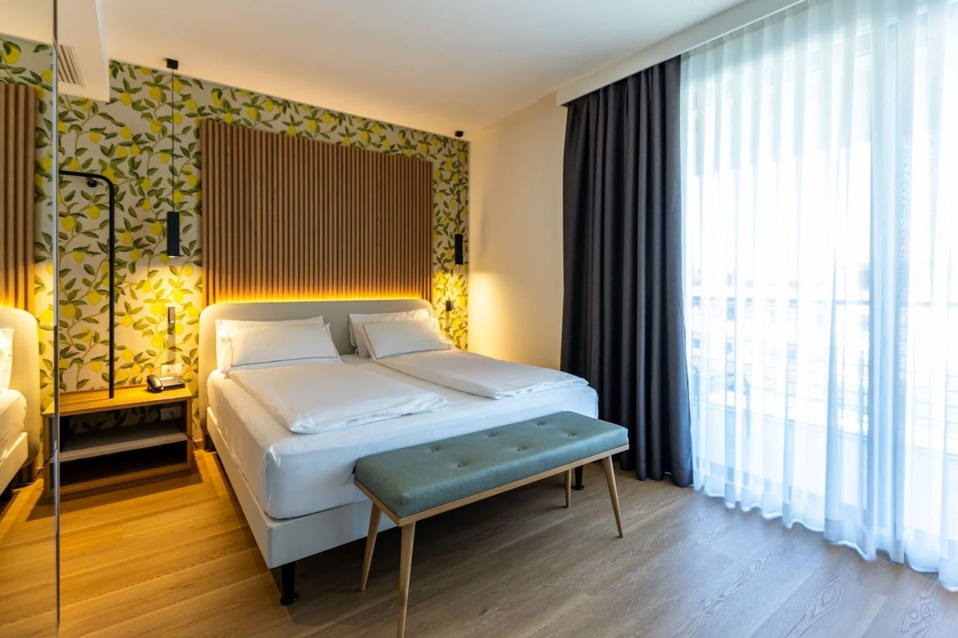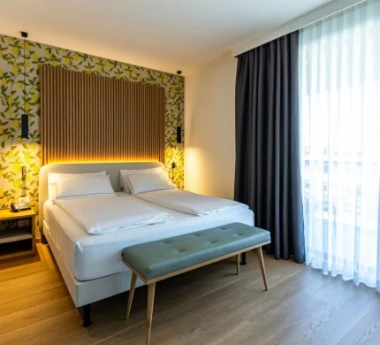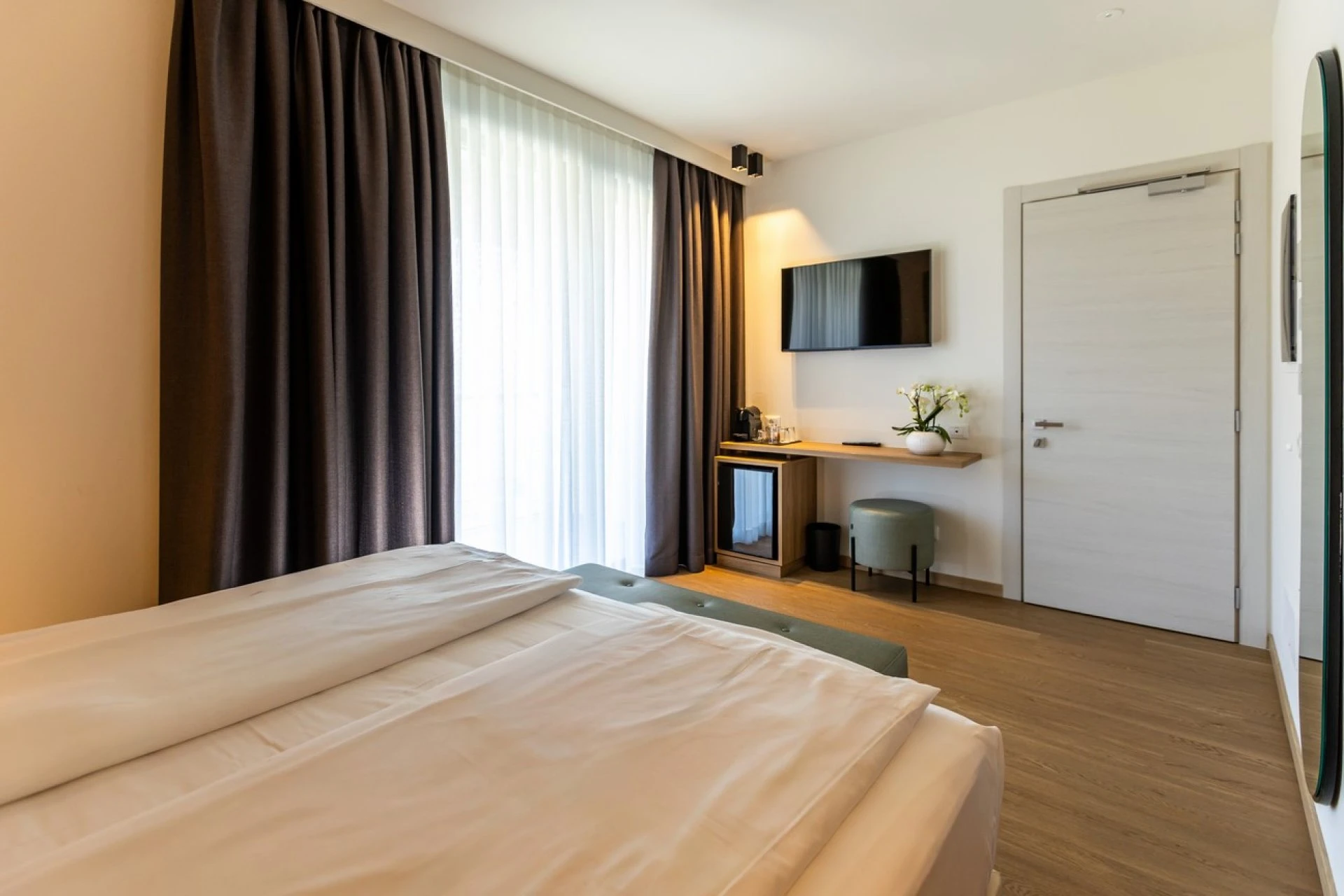 Confortevole camera dotata di letto matrimoniale, bagno moderno con doccia ed una terrazza con vista lago laterale attrezzata con sedie lounge e tavolino. Le nostre camere Classic godono di luce naturale e sono una coccola per i nostri ospiti grazie al calore emanato dal legno e dalla scelta dei colori tenui.