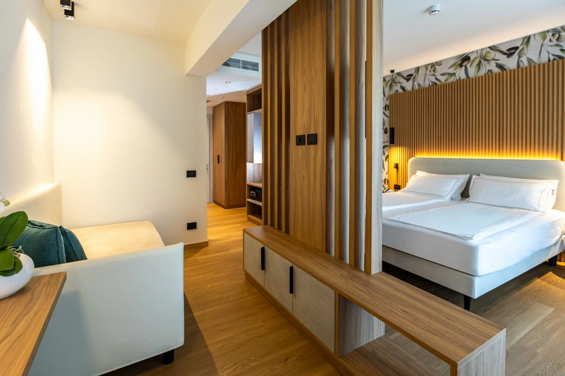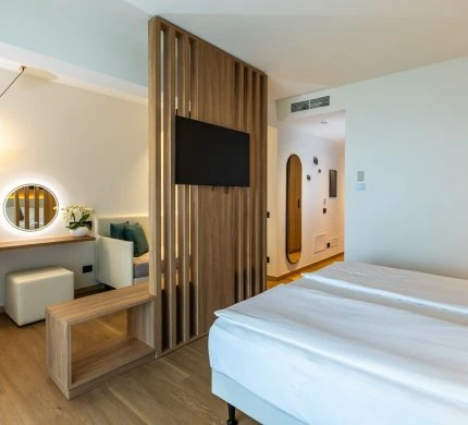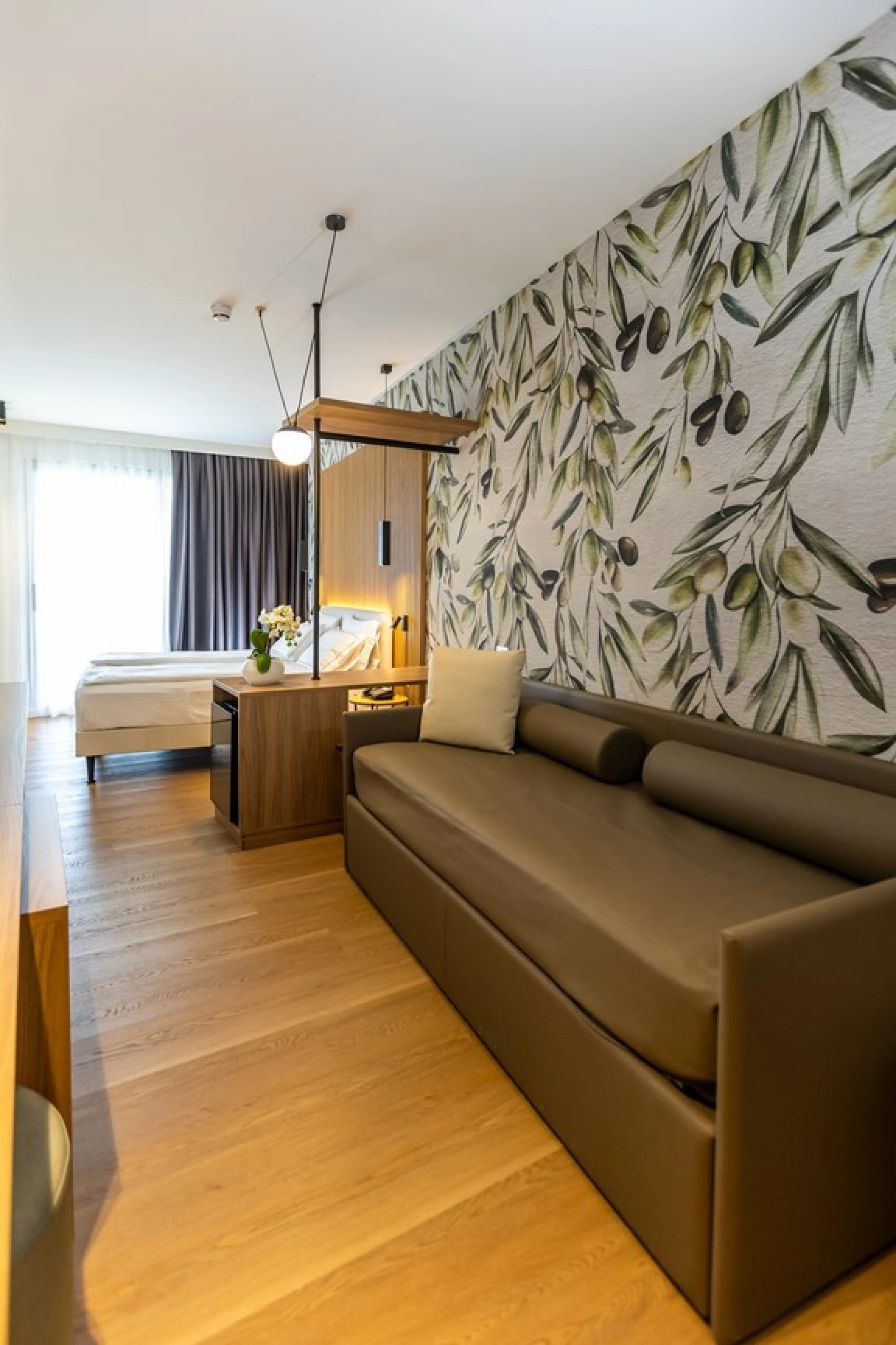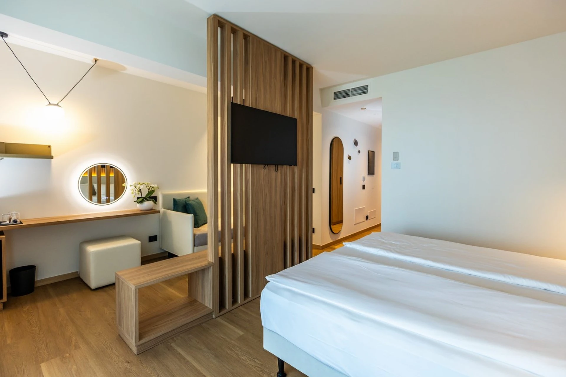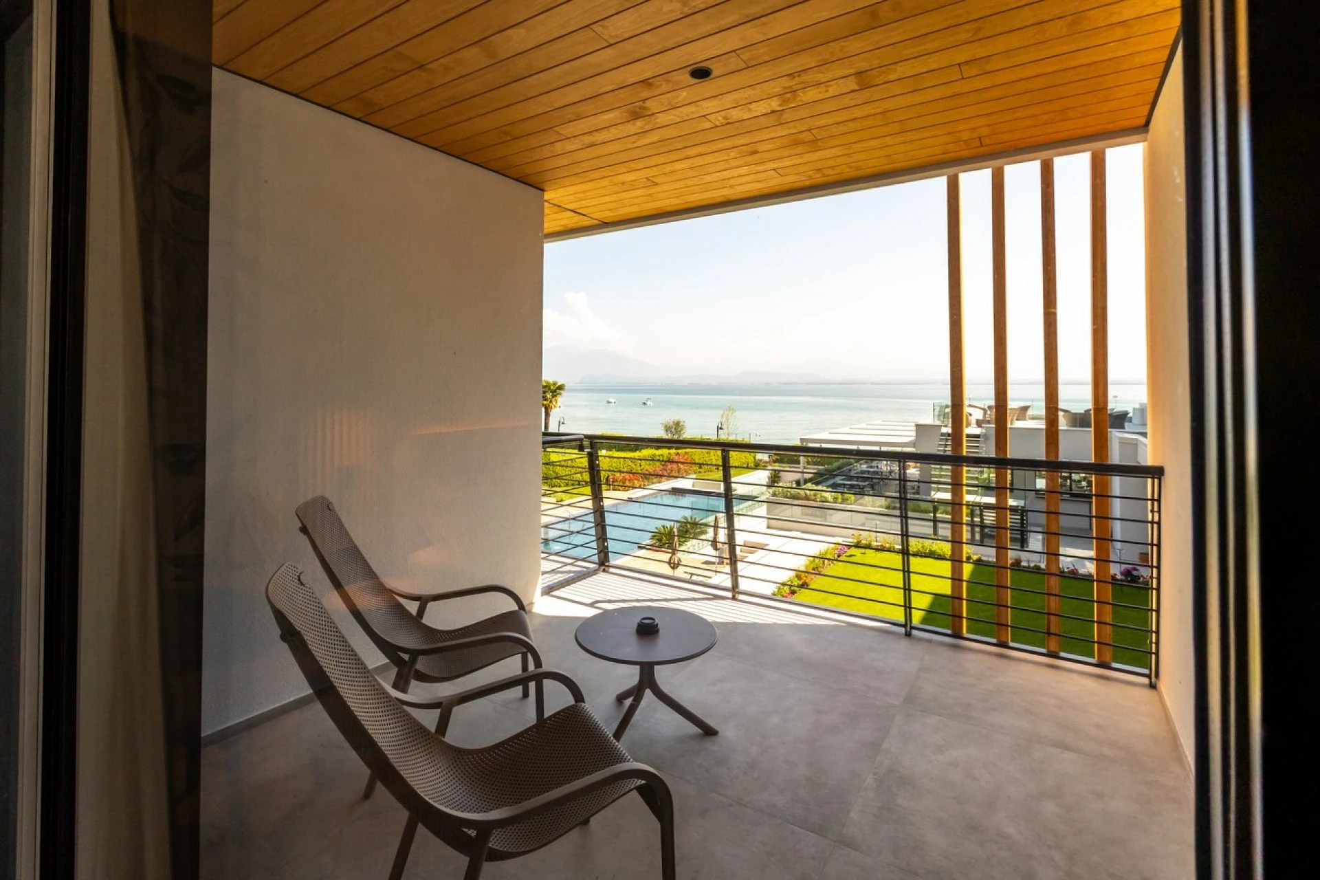 Raffinata, spaziosa e confortevole suite dotata di letto matrimoniale, divano letto e bagno moderno con doccia. Le nostre Suite sono costituite da una zona letto e una living e sono perfette per chi cerca ampi spazi in un’atmosfera di totale rilassamento e pace creata dal calore del legno e dall’accurata selezione dei colori. A completare un’ampia terrazza attrezzata di sedie lounge e tavolino per godersi una meravigliosa vista lago frontale, ideale per ammirare in prima fila le magiche albe del Lago di Garda o i riflessi sull’acqua del tramonto.