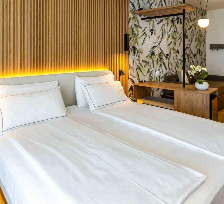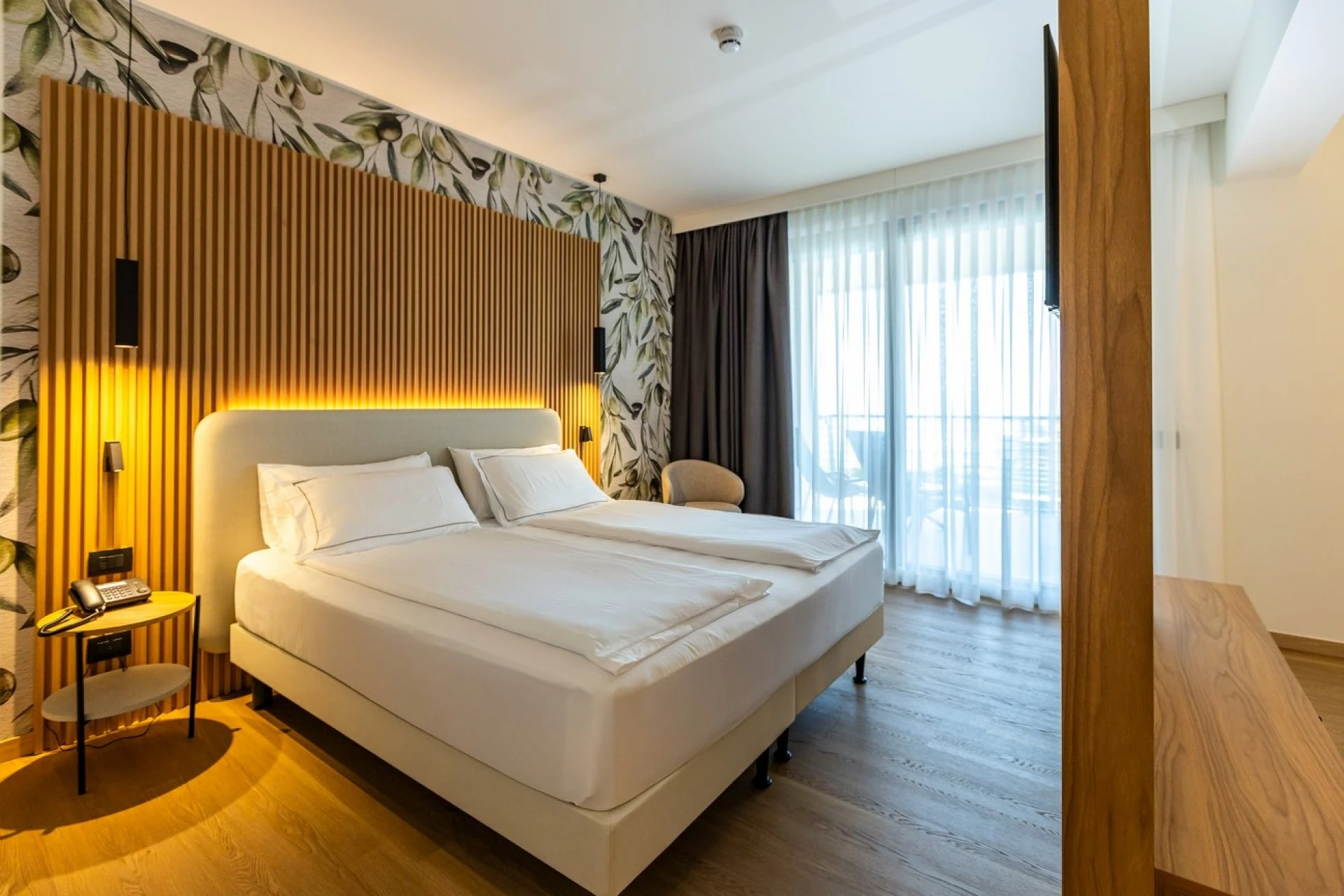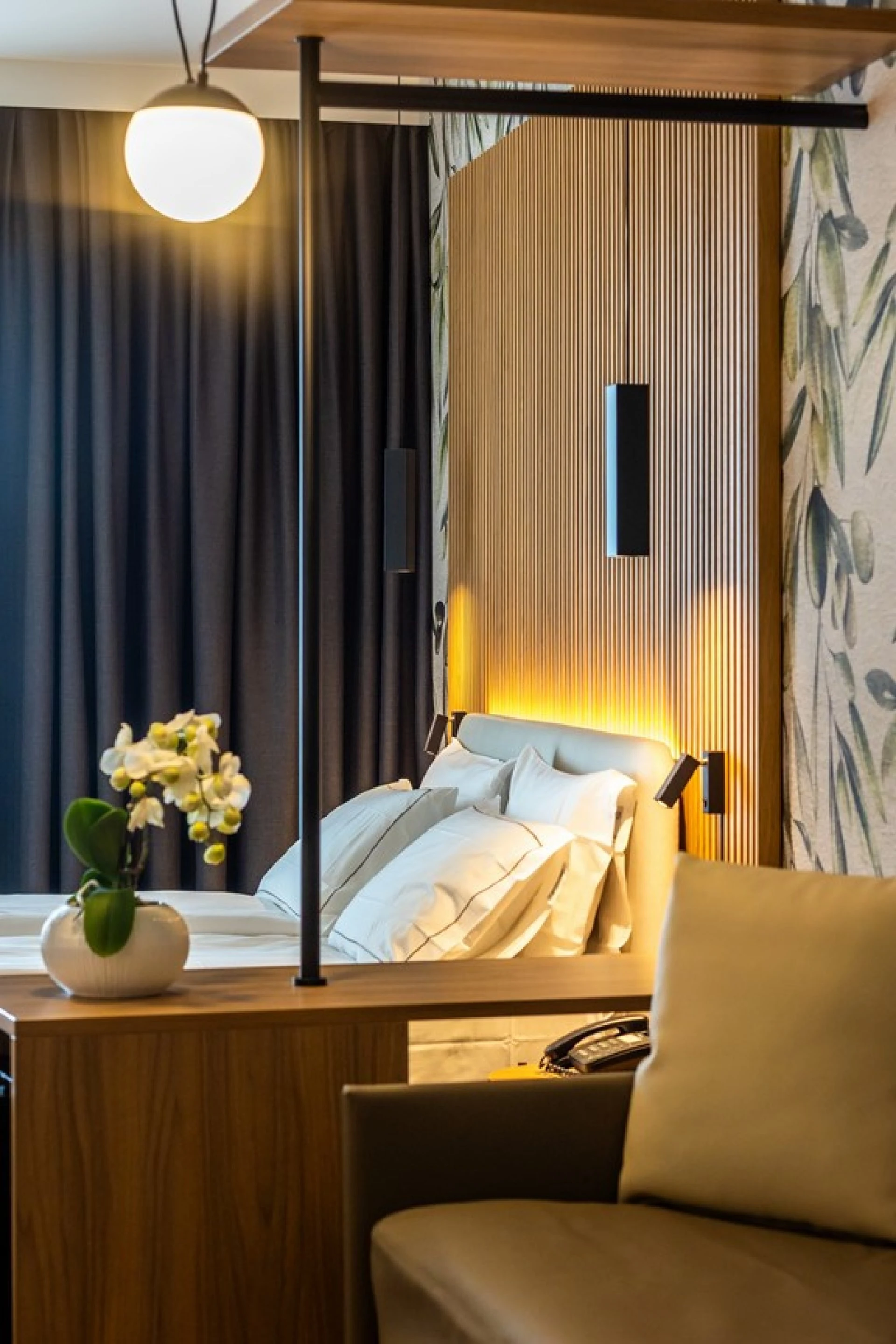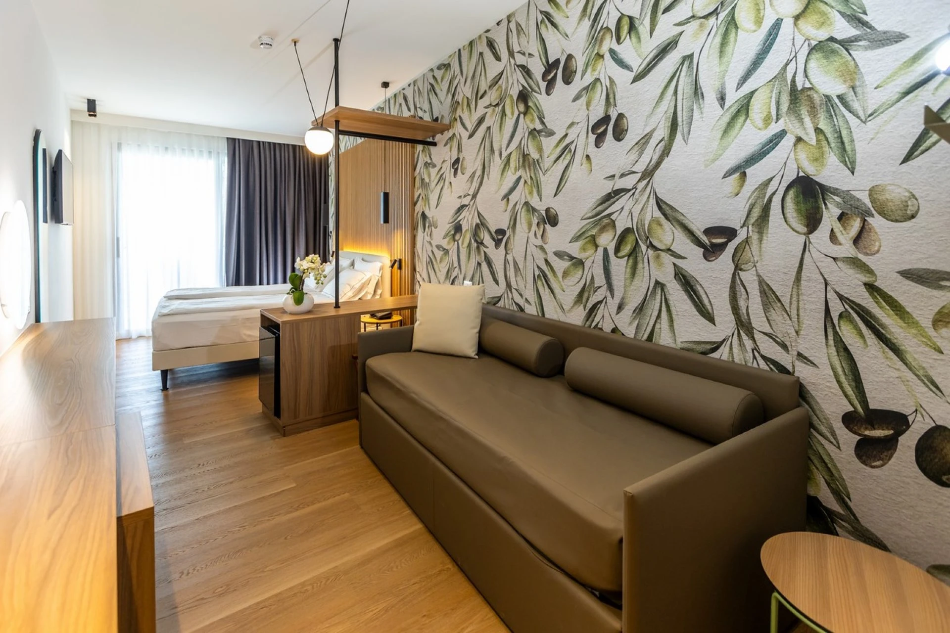 Raffinata, spaziosa e confortevole suite dotata di letto matrimoniale, divano letto e bagno moderno con doccia. Le nostre Suite sono costituite da una zona letto e una living e sono perfette per chi cerca ampi spazi in un’atmosfera di totale rilassamento e pace creata dal calore del legno e dall’accurata selezione dei colori. A completare un’ampia terrazza attrezzata di sedie lounge e tavolino per godersi una meravigliosa vista lago frontale, ideale per ammirare in prima fila le magiche albe del Lago di Garda o i riflessi sull’acqua del tramonto.
