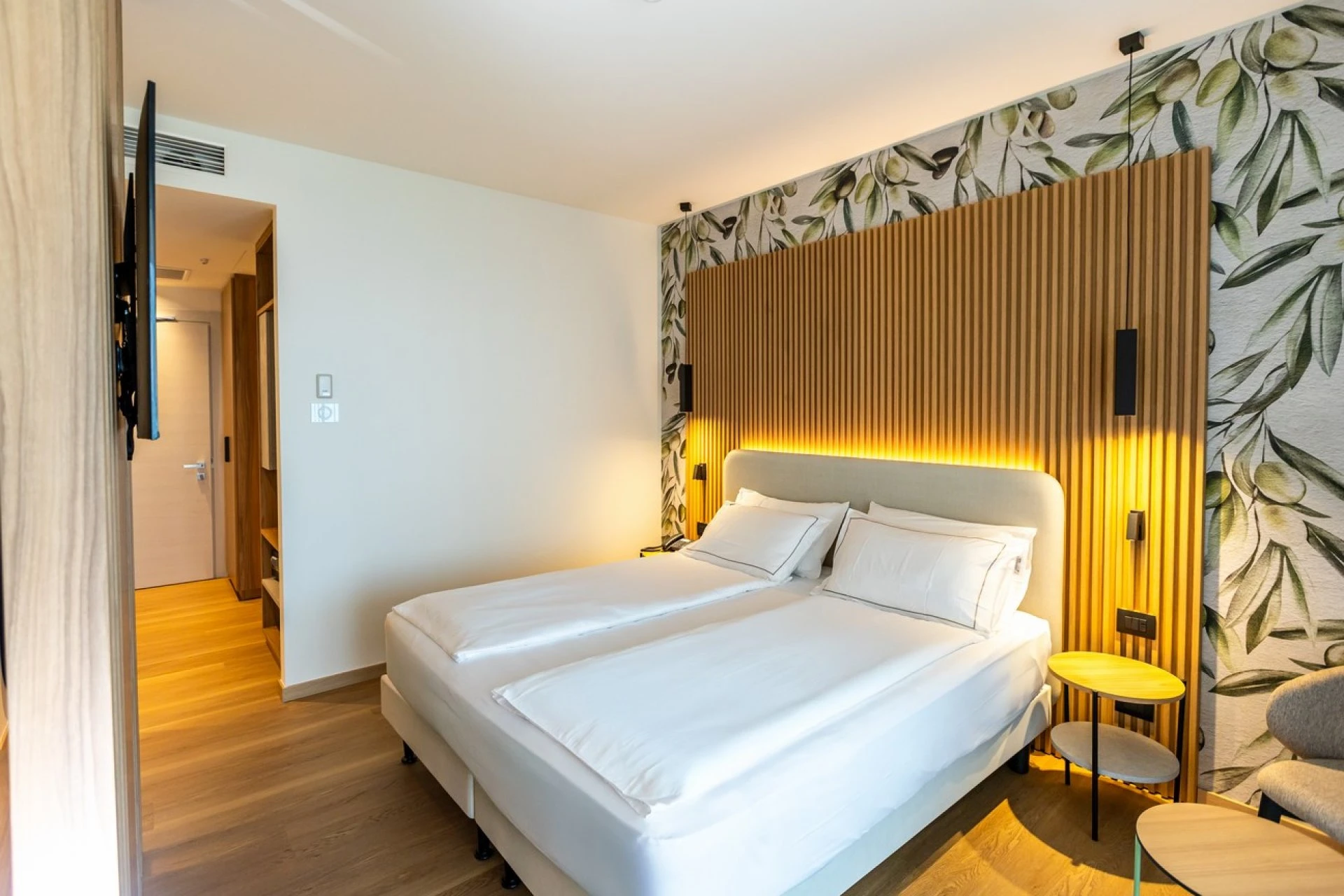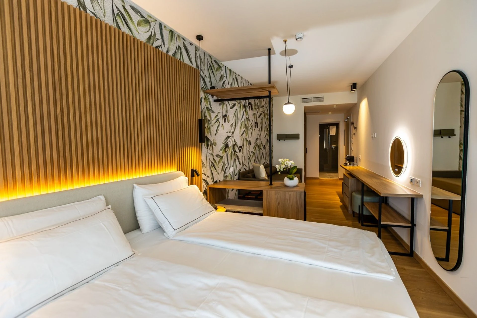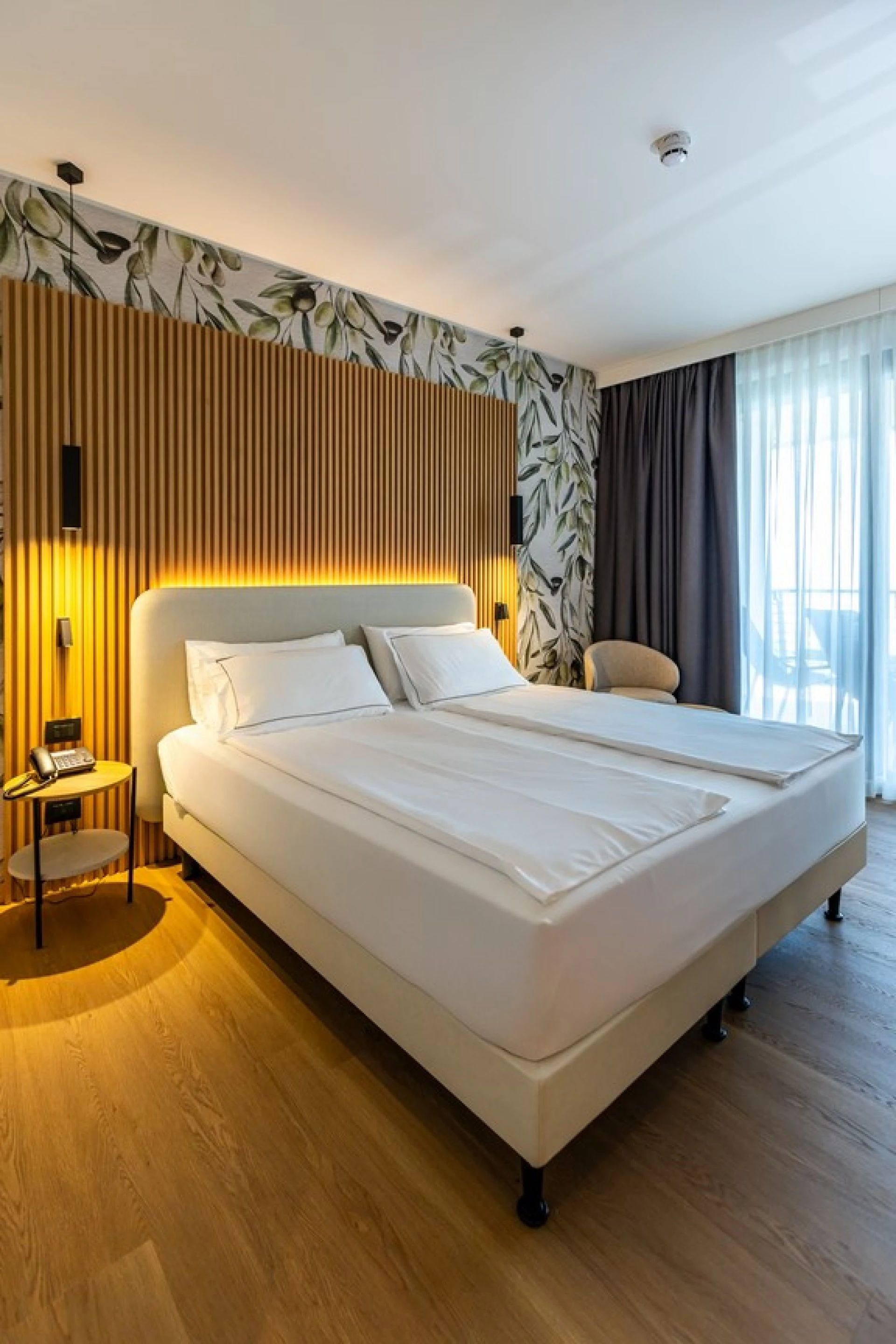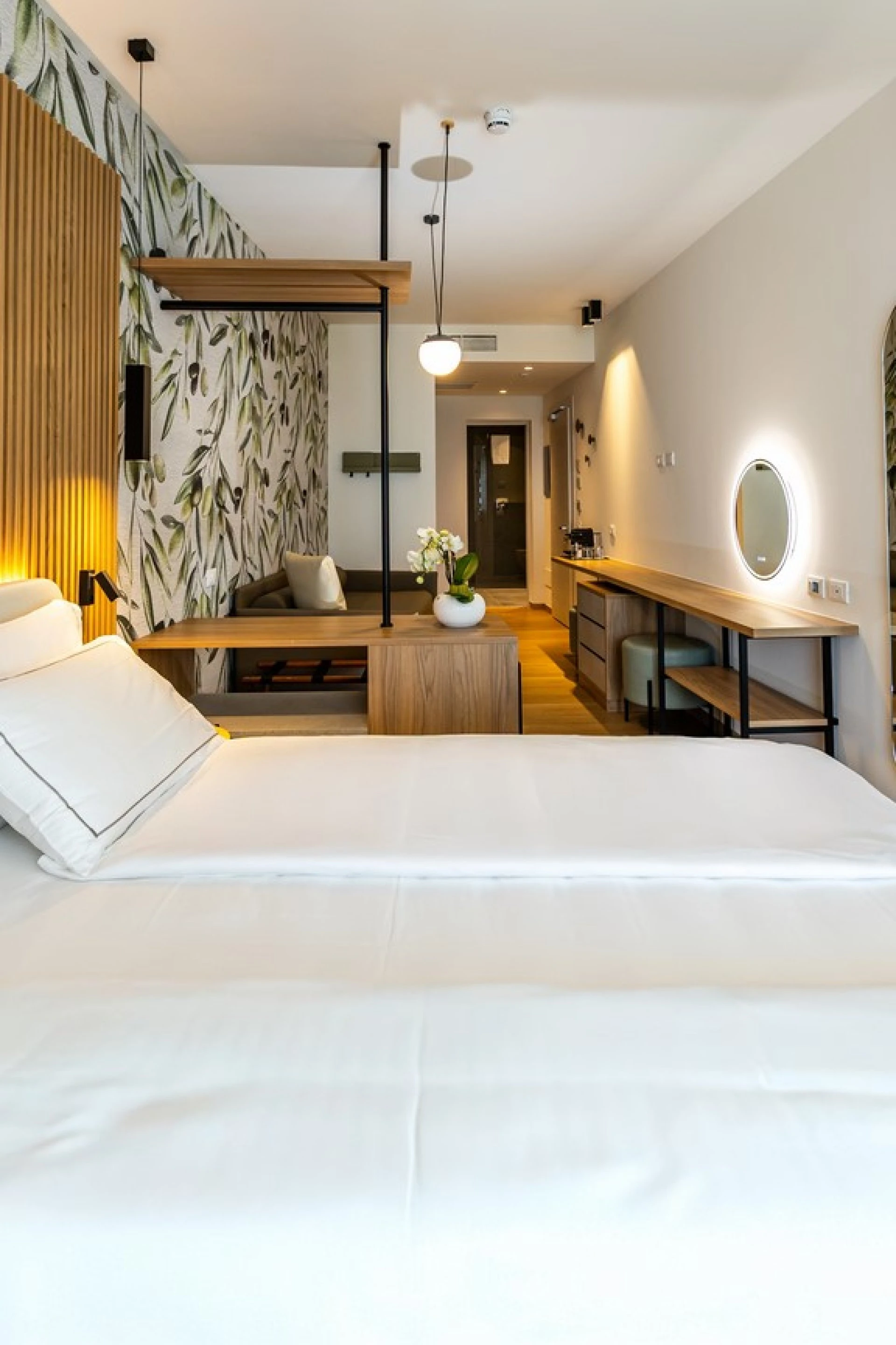 Raffinata, spaziosa e confortevole suite dotata di letto matrimoniale, divano letto e bagno moderno con doccia. Le nostre Suite sono costituite da una zona letto e una living e sono perfette per chi cerca ampi spazi in un’atmosfera di totale rilassamento e pace creata dal calore del legno e dall’accurata selezione dei colori. A completare un’ampia terrazza attrezzata di sedie lounge e tavolino per godersi una meravigliosa vista lago frontale, ideale per ammirare in prima fila le magiche albe del Lago di Garda o i riflessi sull’acqua del tramonto.