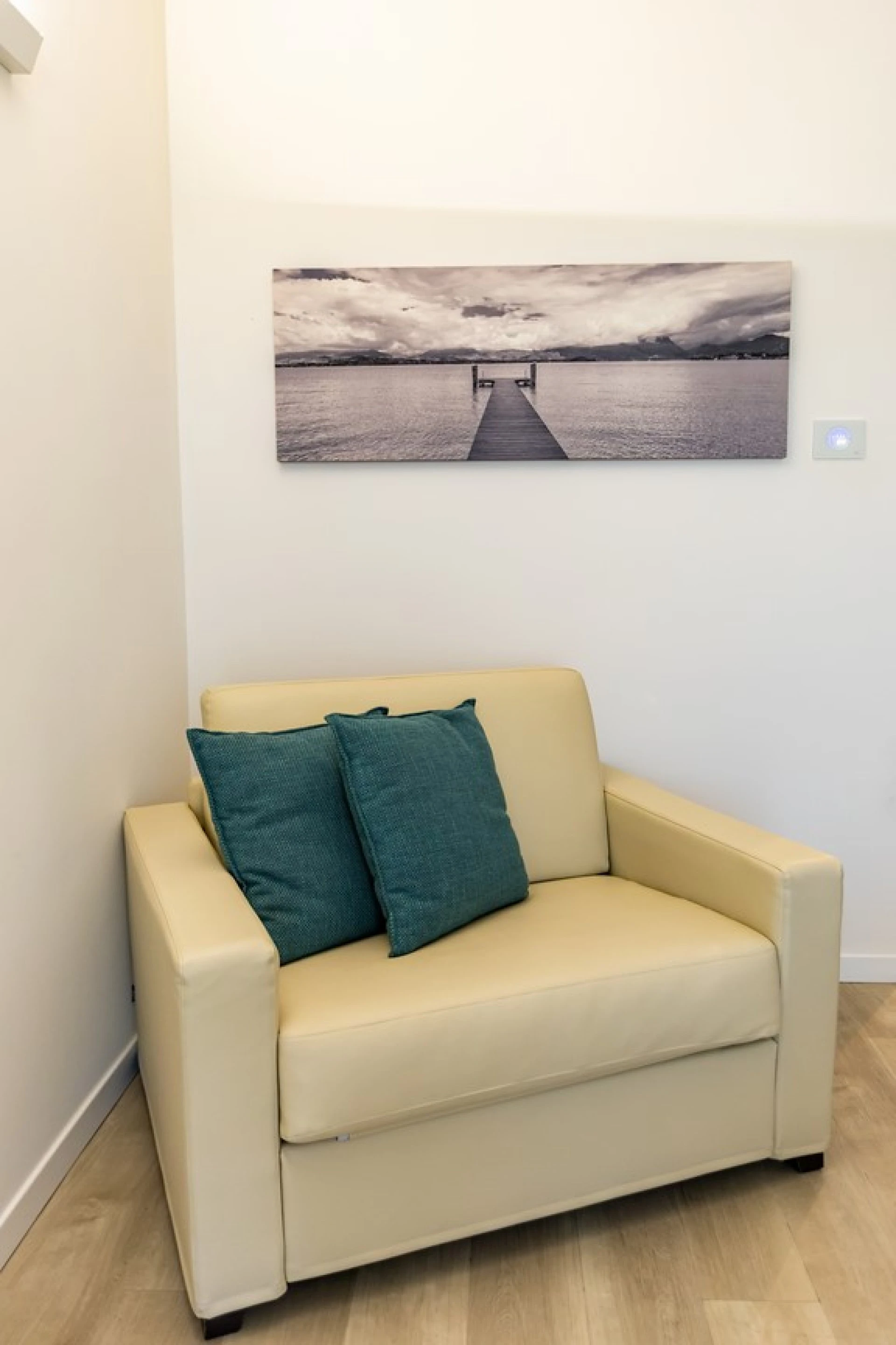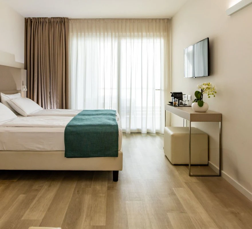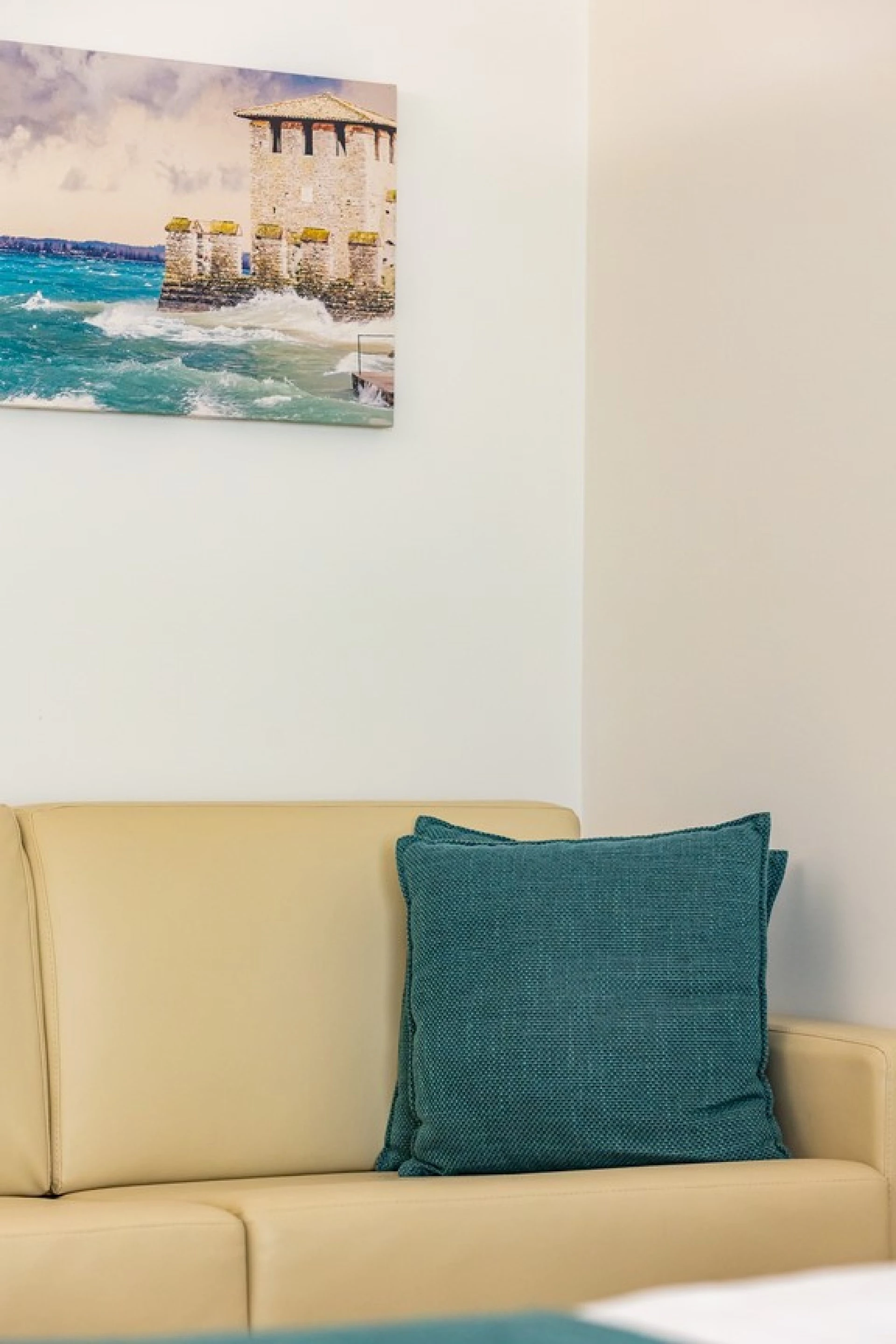 Spaziosa camera dotata di letto matrimoniale, divano letto, ed un ampio bagno moderno con doccia. Le nostre camere Superior sono caratterizzate da colori chiari, luce naturale e pavimento in legno, e dispongono inoltre di una terrazza attrezzata di poltrone e tavolino con vista lago laterale.